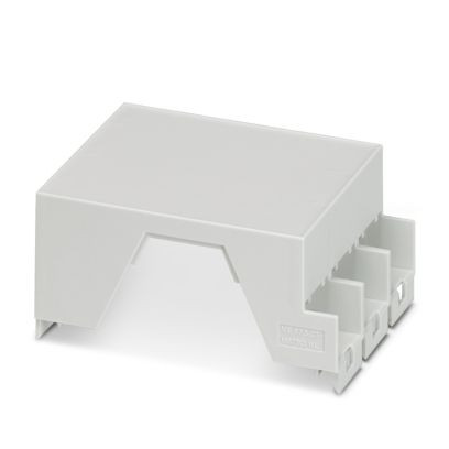 Tragschienengehäuse, Gehäuseoberteil für Steckverbinder mit Grundleiste, Breite: 67,5 mm, Höhe: 99 mm, Tiefe: 45,85 mm, Farbe: lichtgrau (ähnlich RAL 7035)
