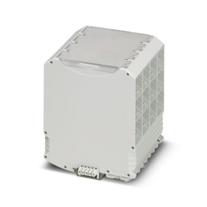 Tragschienengehäuse, Komplettgehäuse mit Metallfußriegel, hohe Bauform, ohne Lüftungsschlitze, Breite: 90,4 mm, Höhe: 99 mm, Tiefe: 113,65 mm, Farbe: lichtgrau (ähnlich RAL 7035), Querverbindung: Tragschienen-Busverbinder (optional), Polzahl Querverbinder: 5