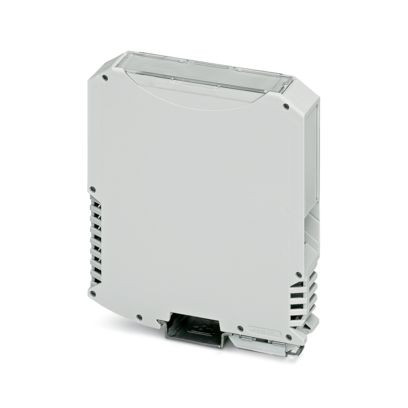 Tragschienengehäuse, Komplettgehäuse mit Metallfußriegel, hohe Bauform, mit Lüftungsschlitzen, Breite: 22,6 mm, Höhe: 99 mm, Tiefe: 113,65 mm, Farbe: lichtgrau (ähnlich RAL 7035), Querverbindung: Tragschienen-Busverbinder (optional), Polzahl Querverbinder: 5