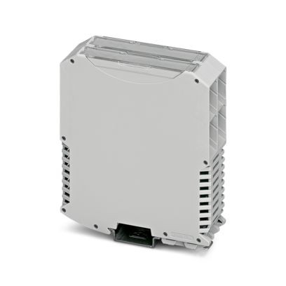 Tragschienengehäuse, Komplettgehäuse mit Metallfußriegel, hohe Bauform, mit Lüftungsschlitzen, Breite: 35,2 mm, Höhe: 99 mm, Tiefe: 113,65 mm, Farbe: lichtgrau (ähnlich RAL 7035), Querverbindung: Tragschienen-Busverbinder (optional), Polzahl Querverbinder: 5