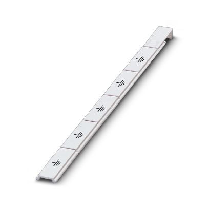 Marker für Klemmen, Streifen, weiß, beschriftet, längs: Erdungssymbol, Montageart: verrasten, für Klemmenbreite: 18 mm, Anzahl der Einzelschilder: 5, Textfeldhöhe: 5 mm, Textfeldbreite: 18 mm