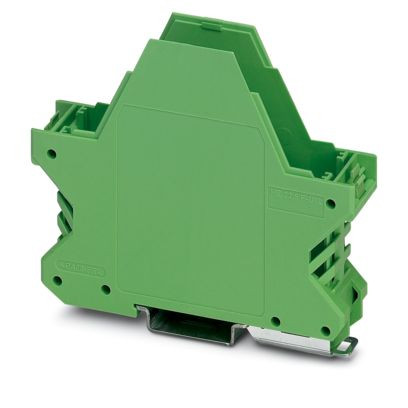 Tragschienengehäuse, Gehäuseunterteil mit Metallfußriegel und FE-Kontakt, flache Bauform, mit Lüftungsschlitzen, Breite: 22,6 mm, Höhe: 99 mm, Tiefe: 84,8 mm, Farbe: grün (ähnlich RAL 6021), Querverbindung: ohne Busverbinder, Polzahl Querverbinder: nicht relevant
