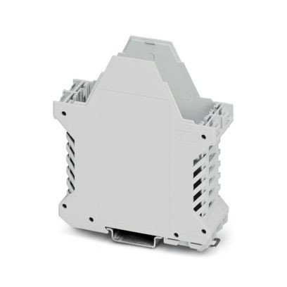 Tragschienengehäuse, Gehäuseunterteil mit Metallfußriegel, mit 2 FE-Kontakten, hohe Bauform, mit Lüftungsschlitzen, Breite: 35,2 mm, Höhe: 99 mm, Tiefe: 107,3 mm, Farbe: lichtgrau (ähnlich RAL 7035), Querverbindung: ohne Busverbinder, Polzahl Querverbinder: nicht relevant