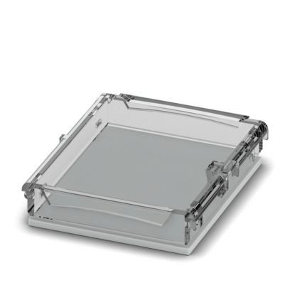 Tragschienengehäuse für den Einsatz in Installationsverteilern nach DIN 43880, transparenter Schwenkdeckel, plombierbar, inklusive Einlegeblende, Breite: 53,6 mm, Höhe: 45 mm, Tiefe: 8 mm, Farbe: lichtgrau (ähnlich RAL 7035)