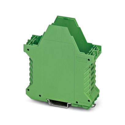 Tragschienengehäuse, Gehäuseunterteil mit Metallfußriegel, hohe Bauform, ohne Lüftungsschlitze, Breite: 35,2 mm, Höhe: 99 mm, Tiefe: 107,3 mm, Farbe: grün (ähnlich RAL 6021), Querverbindung: ohne Busverbinder, Polzahl Querverbinder: nicht relevant