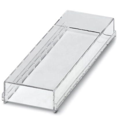 Abdeckhaube, zur berührungs- und staubgeschützten Kapselung der Bauteile, in klarer Ausführung. Höhe: 15 mm, Breite: 125 mm