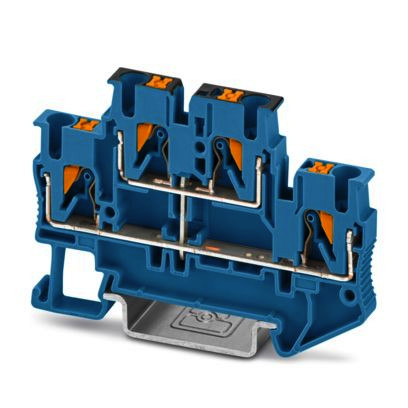 Doppelstockklemme, mit Potenzialverbinder, Nennspannung: 500 V, Nennstrom: 22 A, Anschlussart: Push-in-Anschluss, 1. und 2. Etage, Bemessungsquerschnitt: 2,5 mm², Querschnitt: 0,14 mm² - 4 mm², Montageart: NS 35/7,5, NS 35/15, Farbe: blau