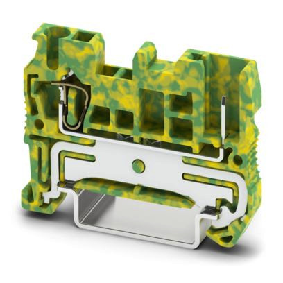 Zugfeder-Schutzleiterklemme, Anzahl der Anschlüsse: 2, Anschlussart: Zugfeder- / Steckanschluss, 1. Etage Anschluss links, Querschnitt: 0,08 mm² - 4 mm², 1. Etage Anschluss rechts, Montageart: NS 35/7,5, NS 35/15, Farbe: grün-gelb