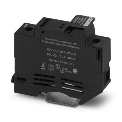 Sicherungshalter, Art der Sicherung: Keramik, Sicherungstyp: Class CC, Nennspannung: 72 V, Nennstrom: 30 A, Polzahl: 1, Anschlussart: Schraubanschluss, Bemessungsquerschnitt: 16 mm², Querschnitt: 1 mm²- 16 mm², Montageart: NS 35/7,5, NS 35/15, Farbe: schwarz