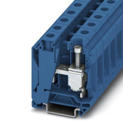 Durchgangsklemme, Nennspannung: 1000 V, Nennstrom: 125 A, Anschlussart: Schraubanschluss, Anzahl der Anschlüsse: 2, Querschnitt: 10 mm² - 35 mm², AWG: 8 - 2, Breite: 16 mm, Farbe: blau, Montageart: NS 35/7,5, NS 35/15