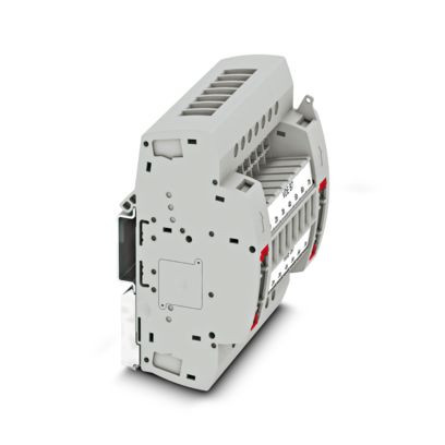 Prüfsteckleiste, VDE kodiert Typ B7, Nennspannung: 400 V, Anzahl der Anschlüsse: 14, Polzahl: 7, Anschlussart: Schraubanschluss, Bemessungsquerschnitt: 6 mm², 1. Etage, Querschnitt: 0,2 mm² - 10 mm², Montageart: NS 35/7,5, NS 35/15, Farbe: grau