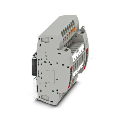 Prüfsteckleiste, VDE kodiert Typ A7, Nennspannung: 400 V, Nennstrom: 24 A, Anzahl der Anschlüsse: 14, Polzahl: 7, Anschlussart: Push-in-Anschluss, Bemessungsquerschnitt: 6 mm², 1. Etage, Querschnitt: 0,5 mm² - 10 mm², Montageart: Tragschienenmontage, NS 35/7,5, NS 35/15, Farbe: grau