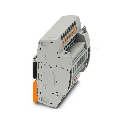 Prüfsteckleiste, Nennspannung: 400 V, Anschlussart: Push-in-Anschluss, 1. Etage, Bemessungsquerschnitt: 6 mm², Querschnitt: 0,5 mm² - 10 mm², Montageart: Tragschienenmontage, Farbe: grau