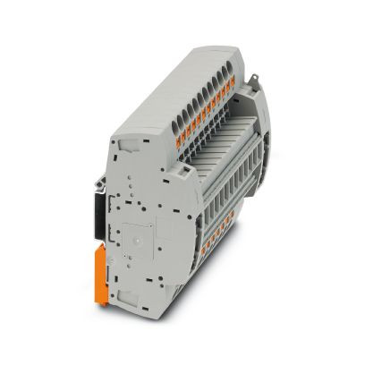 Prüfsteckleiste, Nennspannung: 400 V, Anschlussart: Push-in-Anschluss, 1. Etage, Bemessungsquerschnitt: 6 mm², Querschnitt: 0,5 mm² - 10 mm², Montageart: NS 35/7,5, NS 35/7,5, Farbe: grau