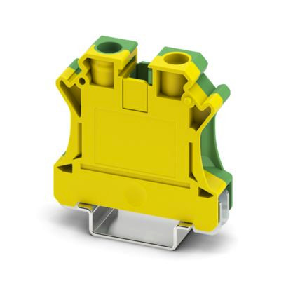 Installations-Schutzleiterklemme, Anzahl der Anschlüsse: 2, Polzahl: 1, Anschlussart: Schraubanschluss, 1. Etage Anschluss rechts, Bemessungsquerschnitt: 16 mm², Querschnitt: 6 mm² - 25 mm², Befestigungsart: PE-Fuß mit Befestigungsschraube, M4, Montageart: NS 35/7,5, NS 35/15, Farbe: grün-gelb