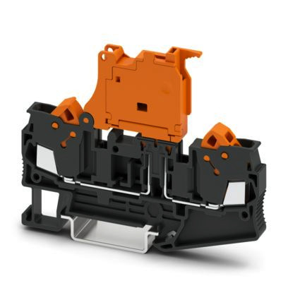 Hebeltrennklemme, Nennspannung: 500 V, Nennstrom: 20 A, Anzahl der Anschlüsse: 2, Anschlussart: Schnellanschluss, Bemessungsquerschnitt: 2,5 mm², 1. Etage, Querschnitt: 0,5 mm² - 2,5 mm², Montageart: NS 35/7,5, NS 35/15, Farbe: schwarz/orange