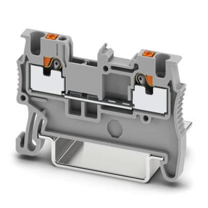 Durchgangsklemme, Nennspannung: 500 V, Nennstrom: 17,5 A, Anzahl der Anschlüsse: 2, Anschlussart: Push-in-Anschluss, Bemessungsquerschnitt: 1,5 mm², 1. Etage, Querschnitt: 0,14 mm² - 1,5 mm², Montageart: NS 35/7,5, NS 35/15, Farbe: grau