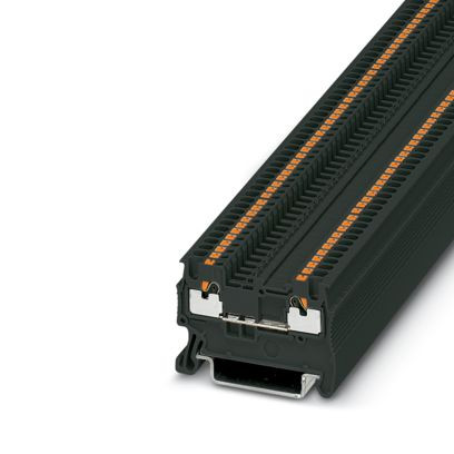 Durchgangsklemme, Nennspannung: 500 V, Nennstrom: 17,5 A, Anzahl der Anschlüsse: 2, Anschlussart: Push-in-Anschluss, Bemessungsquerschnitt: 1,5 mm², 1. Etage, Querschnitt: 0,14 mm² - 1,5 mm², Montageart: NS 35/7,5, NS 35/15, Farbe: schwarz