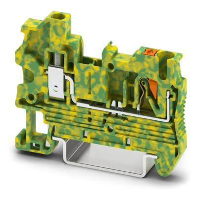 Schutzleiter-Reihenklemme, Anschlussart: Push-in-Anschluss, Bemessungsquerschnitt: 2,5 mm², Querschnitt: 0,14 mm² - 4 mm², Anschlussart: Schraubanschluss, Bemessungsquerschnitt: 2,5 mm², Querschnitt: 0,14 mm² - 4 mm², Montage: NS 35/7,5, NS 35/15, Farbe: grün-gelb