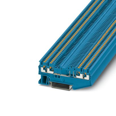 Trennklemme, Der max. Belastungsstrom darf durch den Summenstrom aller angeschlossenen Leiter nicht überschritten werden. Strom und Spannung werden durch den eingesetzten Stecker bestimmt., Nennspannung: 400 V, Nennstrom: 10 A, 1. Etage, Anschlussart: Push-in-Anschluss, Bemessungsquerschnitt: 1,5 mm², Querschnitt: 0,14 mm² - 1,5 mm², Montage: NS 35/7,5, NS 35/15, Farbe: blau