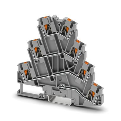 Mehrstockklemme, Nennspannung: 800 V, Nennstrom: 20 A, Anzahl der Anschlüsse: 7, Anschlussart: Push-in-Anschluss, Bemessungsquerschnitt: 2,5 mm², 1., 2., 3. und 4. Etage, Querschnitt: 0,14 mm² - 4 mm², Montageart: NS 35/7,5, NS 35/15, Farbe: grau