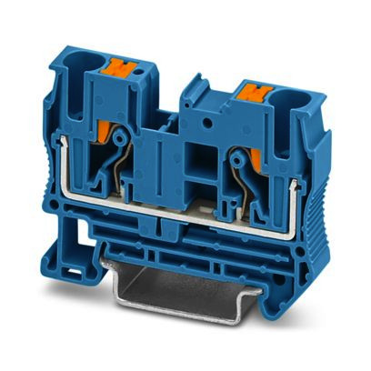 Durchgangsklemme, Nennspannung: 1000 V, Nennstrom: 41 A, Anzahl der Anschlüsse: 2, Polzahl: 1, Anschlussart: Push-in-Anschluss, Bemessungsquerschnitt: 6 mm², Querschnitt: 0,5 mm² - 10 mm², Montageart: NS 35/7,5, NS 35/15, Farbe: blau