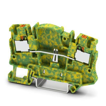 Schutzleiter-Reihenklemme, Anzahl der Anschlüsse: 2, Anschlussart: Push-in-Anschluss, 1. Etage, Querschnitt: 0,2 mm² - 6 mm², Montageart: NS 35/7,5, NS 35/15, Farbe: grün-gelb