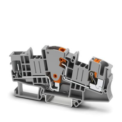 Messwandler-Trennklemme, Nennspannung: 500 V, Nennstrom: 30 A, Anschlussart: Push-in-Anschluss, 1. Etage, Bemessungsquerschnitt: 6 mm², Querschnitt: 0,5 mm² - 10 mm² , Farbe: grau