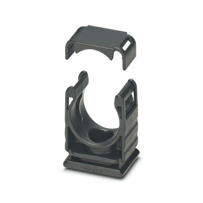 Schlauchhalter mit Deckel, Material: PA, Farbe: schwarz, Brennbarkeitsklasse nach UL 94: V2