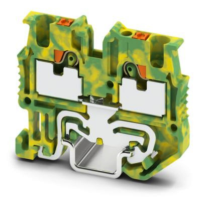 Mini-Schutzleiterklemme, Anzahl der Anschlüsse: 2, Anschlussart: Push-in-Anschluss, 1. Etage, Querschnitt: 0,14 mm² - 1,5 mm², Montageart: NS 15, Farbe: grün-gelb