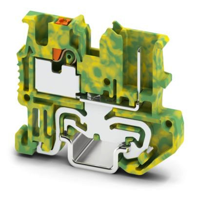 Mini-Schutzleiterklemme, Anzahl der Anschlüsse: 2, Anschlussart: Push-in-Anschluss, 1. Etage, Querschnitt: 0,14 mm² - 1,5 mm², Montageart: NS 15, Farbe: grün-gelb