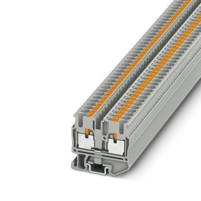 Minidurchgangsklemme, Nennspannung: 500 V, Nennstrom: 24 A, Anzahl der Anschlüsse: 2, Polzahl: 1, Anschlussart: Push-in-Anschluss, Bemessungsquerschnitt: 2,5 mm², 1. Etage, Querschnitt: 0,14 mm² - 4 mm², Montageart: NS 15, Farbe: grau