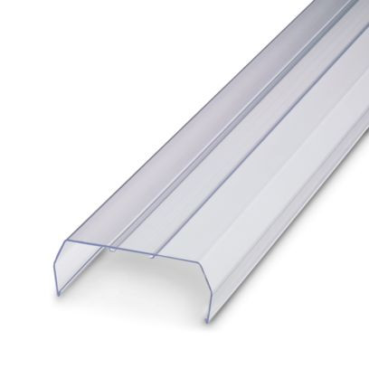 Abdeckprofil, zum Abdecken von Klemmenleisten, wird auf Abdeckprofilträger APT-ME oder Endhalter APH-ME gerastert. An den Enden und in Abständen von ca. 40 cm ist ein Abdeckprofilträger zu setzen. Lieferlänge: 1 m