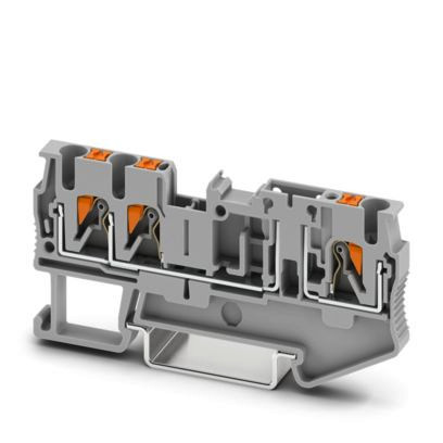 Trennklemme, Der max. Belastungsstrom darf durch den Summenstrom aller angeschlossenen Leiter nicht überschritten werden. Strom und Spannung werden durch den eingesetzten Stecker bestimmt., Nennspannung: 400 V, Thermischer Dauerstrom Ith: 20 A, Anschlussart: Push-in-Anschluss, Bemessungsquerschnitt: 2,5 mm², Querschnitt: 0,14 mm² - 4 mm², Montage: NS 35/7,5, NS 35/15, Farbe: grau