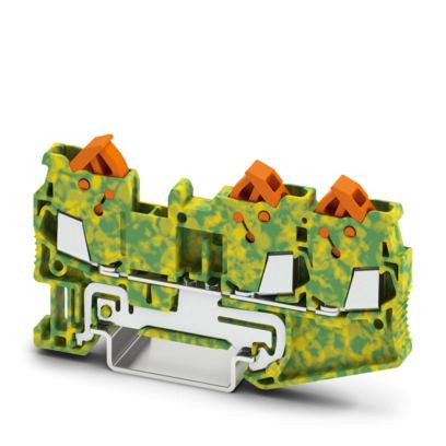 Schutzleiter-Reihenklemme, Anzahl der Anschlüsse: 3, Anschlussart: Schnellanschluss, 1. Etage, Querschnitt: 0,25 mm² - 1,5 mm², Montageart: NS 35/7,5, NS 35/7,5, Farbe: grün-gelb
