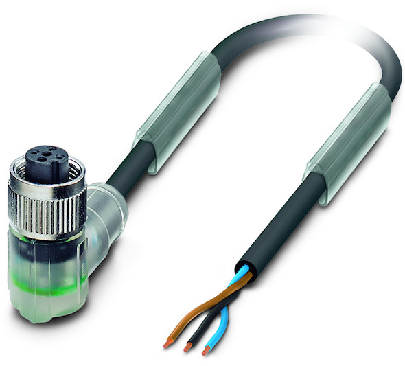 Sensor-/Aktor-Kabel, 3-polig, PUR halogenfrei, schwarzgrau RAL 7021, freies Leitungsende, auf Buchse gewinkelt M12, Kodierung: A, mit 2 LEDs, Kabellänge: 3 m