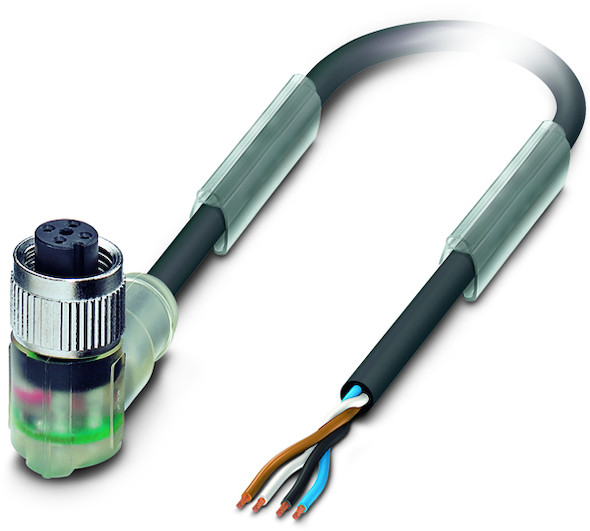 3 LEDs Sensor-/Aktor-Kabel, 4-polig, PUR halogenfrei, schwarzgrau RAL 7021, freies Leitungsende, auf Buchse gewinkelt M12, Kodierung: A, mit 3 LEDs, Kabellänge: 10 m