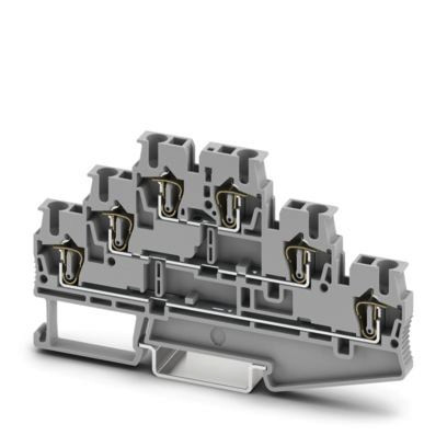 Mehrstockklemme, Nennspannung: 500 V, Nennstrom: 20 A, Anzahl der Anschlüsse: 6, Anschlussart: Zugfederanschluss, Bemessungsquerschnitt: 2,5 mm², 1., 2. und 3. Etage, Querschnitt: 0,08 mm² - 4 mm², Montageart: NS 35/7,5, NS 35/15, Farbe: grau