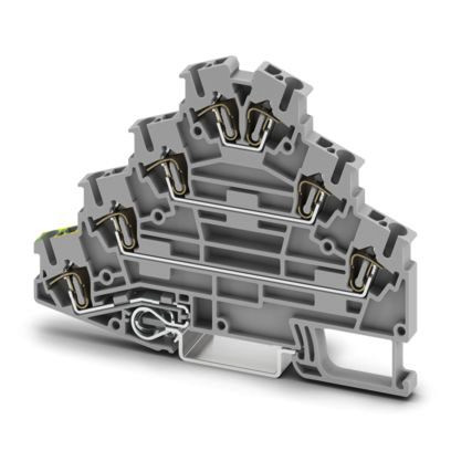 Motorenklemme, Vierstock, mit PE-Fuß, Anschlussart: Zugfederanschluss, Querschnitt: 0,08 mm² - 4 mm², AWG: 28 - 12, Breite: 5,2 mm, Farbe: grau, Montageart: NS 35/7,5, NS 35/15