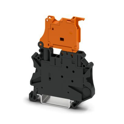 Hebeltrennklemme, Nennspannung: 500 V, Nennstrom: 20 A, Anschlussart: Schraubanschluss, Bemessungsquerschnitt: 4 mm², Querschnitt: 0,14 mm² - 6 mm², Montage: NS 35/7,5, NS 35/15, Farbe: schwarz/orange