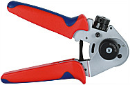 Handcrimpzange zum Verpressen von gedrehten Stift- und Buchsenkontakten,Querschnitt 0,08 - 2,5 mm², AWG 28 - 13, Vierdornverpressung,feinstufige Crimpmaßeinstellung mittels Stellrad, Zwangssperre zurVermeidung von Fehlcrimpungen.