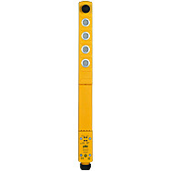 Sicheres Schutztürsystem, 2. Generation, sichere Verriegelung mitsicherer Zuhaltung, entsprechend EN 60947-5-3, für Anwendungen bisPL e. Bestehend aus 5 Elementen: 1. beleuchteter Drucktasterfür Aktivierung der Schutztür, 2. Drucktaster für Zutritt undEntsperrung der Schutztür, 3.beleuchteter Drucktaster, 4. beleuchteterDrucktaster, 5. Bereichs-Halt Taster. Lieferumfang: Sensoreinheit mitDruckknöpfen (Ersatzteil).