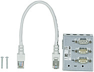 Feldbusverteiler für PMCprimo DriveP (Größe 48A und 72A)Schnittstellen: CANbus, RS232 und Profibus mit Termination-Schalterund RJ45-Kabel zur Verbindung des Feldbusverteilers mit der PMCprimo C.