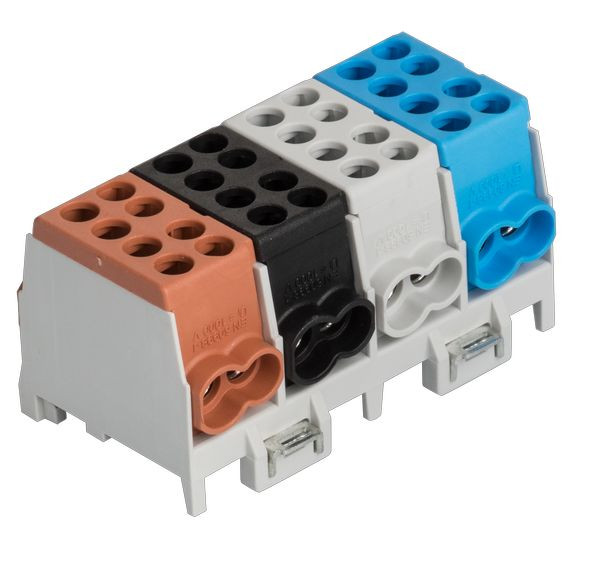 1 x braun / brown / brune,1 x schwarz / black / noir,1 x grau / grey / gris,1 x blau / blue / bleu,mehrpolig, Schnellbefestigung aus Stahlblech, Doppel-Schnellbefestigung bei 4- u. 5-pol., Minimodular kompatibel, VDE-zertifiziert, multipole,quick snap-on, galvanized steel, 2-fold locking for 4- and 5-pole, extendable with the mini modular range, VDE certified, multi polaire, attache rapide d‘acier galvanisé, 2 attaches rapide pour 4 et 5 pôle, compatible avec le système mini-modulaire, certifié par VDE