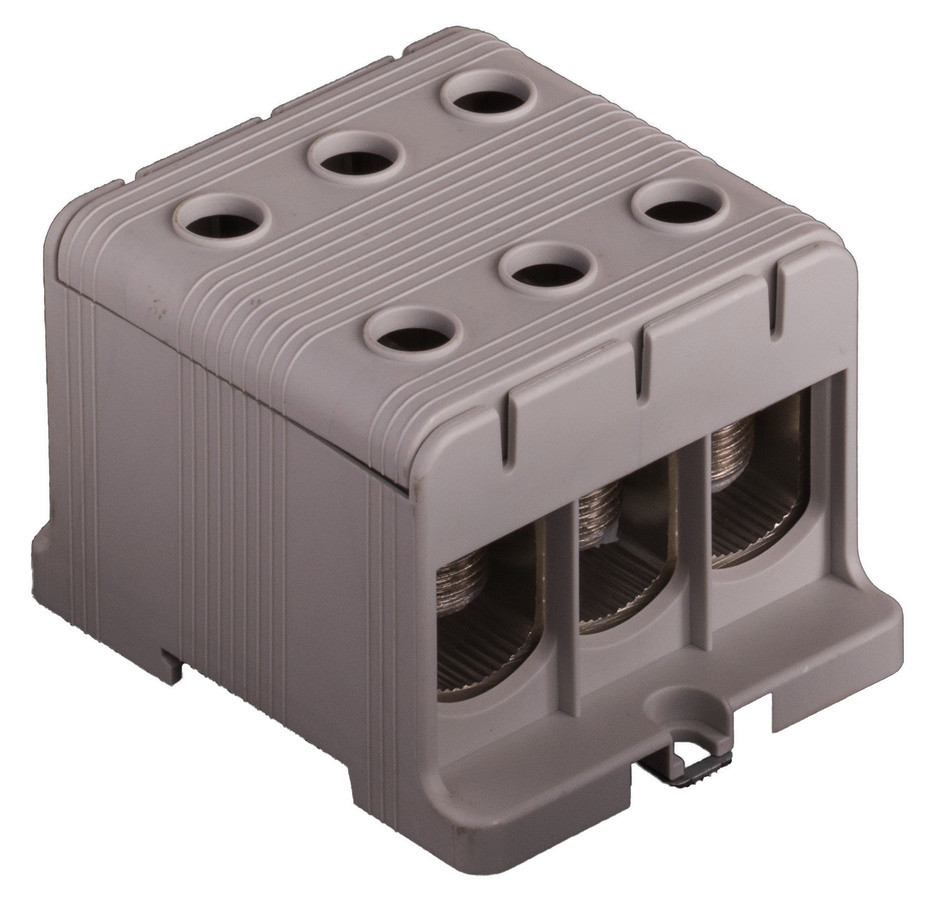 Montage auf 35 mm Tragschiene gem. EN 60715, Für Anwendungen mit Kupfer- und Aluminiumleitungen, Klemmkörper aus Alu, verzinnt, Al 290A, 35-150 mm²,Cu 320A, 35-150mm²²