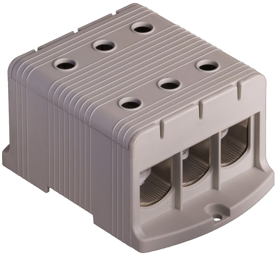 Montage auf 35 mm Tragschiene gem. EN 60715, Für Anwendungen mit Kupfer- und Aluminiumleitungen, Klemmkörper aus Alu, verzinnt, Al 380A, 35-240 mm²,Cu 425A, 35-240mm²