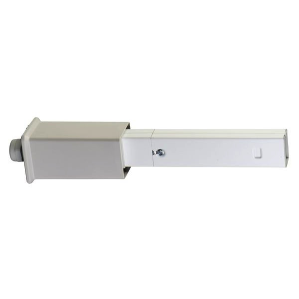 Einspeisestück (links) für LTSC System für den elektrischen Anschluss mit max. 25A. Im Set enthalten mit der Endabdeckung, Pendelmontage.