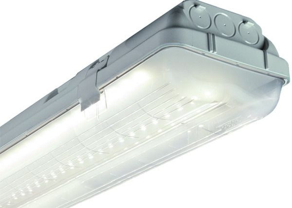 Leuchte hoher Schutzart: Gehäuse aus Polycarbonat mit klarer Abdeckung aus Polycarbonat, mikroprismatisch und weißem Reflektor aus Stahlblech. Verschlüsse aus Polycarbonat / Glasfaser. Lichtverteilung tief-breitstrahlend. Ideal für erhöhte Beanspruchung im Innen- und überdachten Außenbereich. Lineares LED-Modul. Elektronischer LED-Treiber. Version für Wand- oder Deckenanbau oder Ketten- / Seilabhängung.