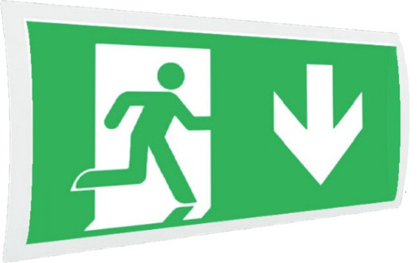 Rettungszeichen-Displayscheibe für FORMULA65, Erkennungsweite 30m, mit Piktogramm Fluchtausgang und Pfeil nach unten, klare Scheibe