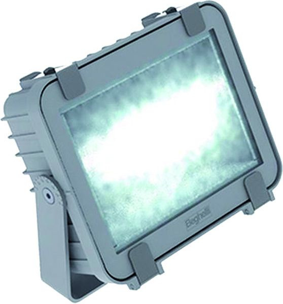 Flood-Strahler hoher Schutzart und hoher Schlagfestigkeit: Gehäuse aus druckgegossenem Aluminium mit Scheibe aus Hartglas, mikroprismatisch und hochglänzendem Reflektor aus Aluminium. Scheibe mit dem Gehäuse durch Scharnier und Verschlüsse aus Edelstahl verbunden. Schwenkbare Halterung (+/- 180°). Lichtverteilung symmetrisch floodstrahlend oder asymmetrisch spotstrahlend, veränderbar. Extrem beständig gegen mechanische und chemische Beanspruchung. Lineares LED-Modul. Elektronischer LED-Treiber. Version für Wand- oder Bodenanbau.